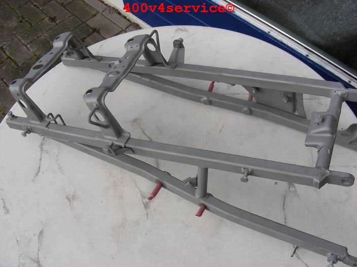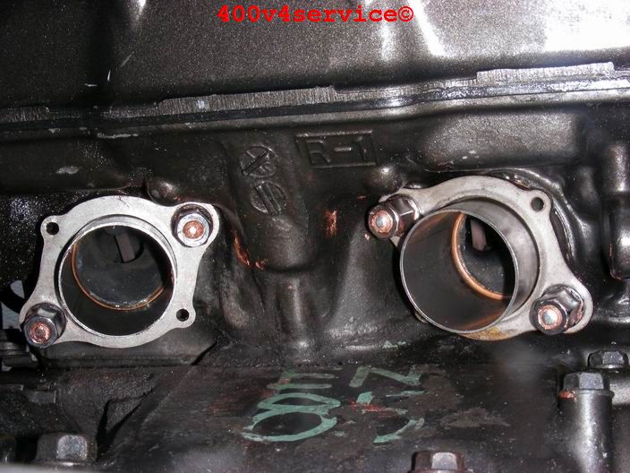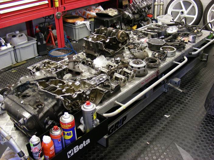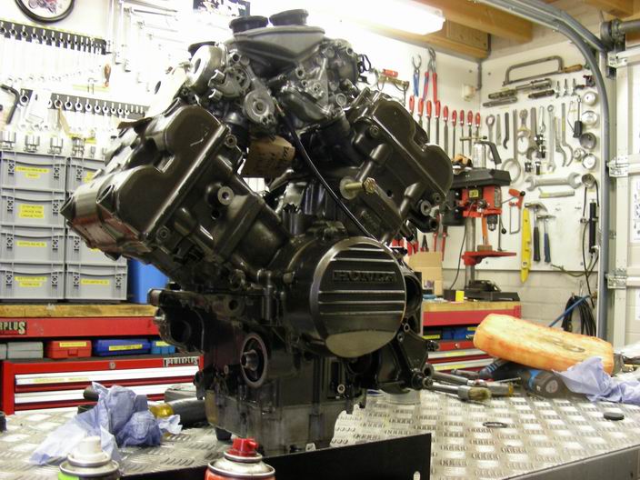 De losse blokdelen vormen inmiddels weer een fraai 400 V4 motorblok.