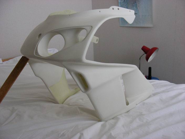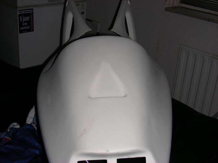 Ondertussen sta ik in dubio. Welke kuipdelen ga ik gebruiken. De Tyga Suzukaset of de Pferrer kuipdelen. Bij die laatste zal dan de rechtse koplampopening moeten worden dichtgemaakt t.b.v. het nummervlak.