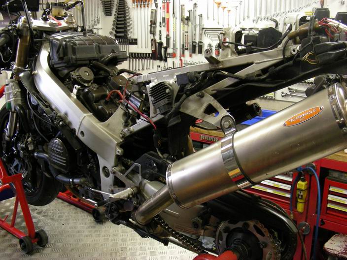 Uiteindelijk is alles goedgekomen. Ik vind het systeem met dubbele uitlaat geweldig staan en het past straks heel goed bij de OKI endurance uitvoering.