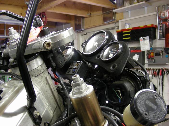 De op maat gemaakte gaskabelset is ook klaar. Motor-computer ook gemonteerd. Dunlop race-remblokken