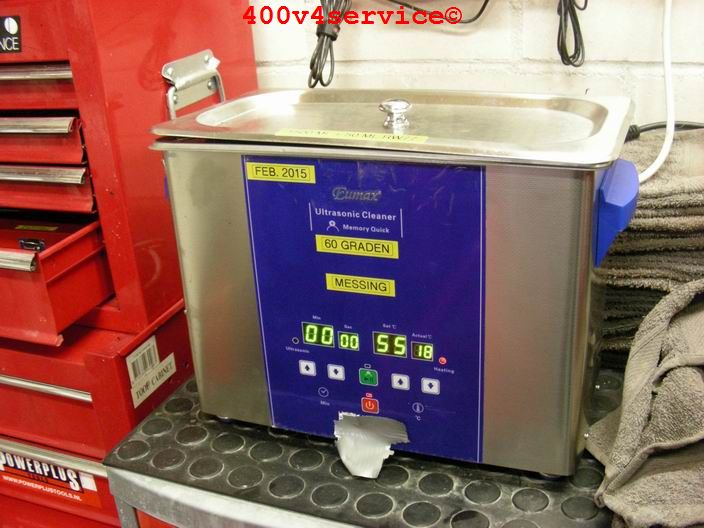 Benodigdheden: grote ultrasonbak met speciale vloeistof voor alu carbs en een kleine ultrasoonbak met reinigingsvloeistof voor de messing delen. Verder natuurlijk perfect passende schroevendraaiers om alle sproeiers zonder beschadigingen te demonteren. De sproeiers zijn heel teer!!!!.