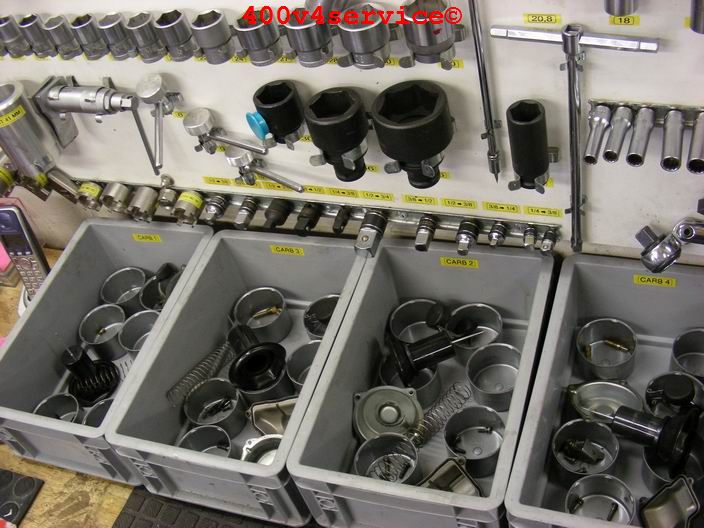 Alles netjes sorteren per carb en noteren. Heel nauwkeurig sleutelen is een vereiste.