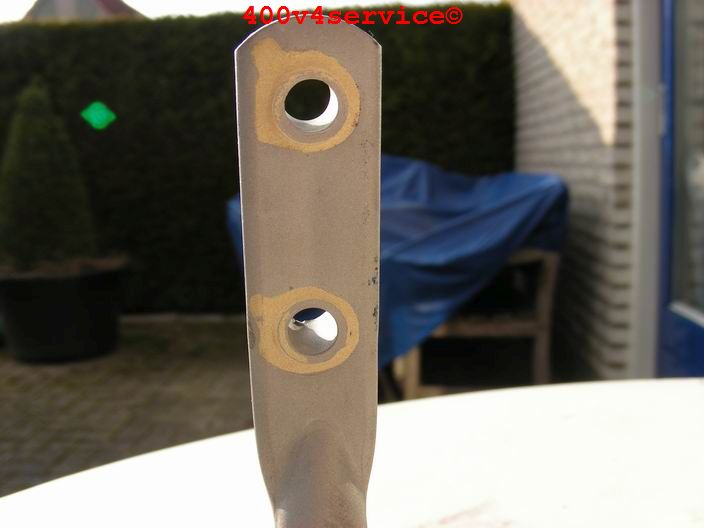 Ditmaal een klein probleempje. Bovenste bevestigingspunt voorste bobine bleek afgebroken.