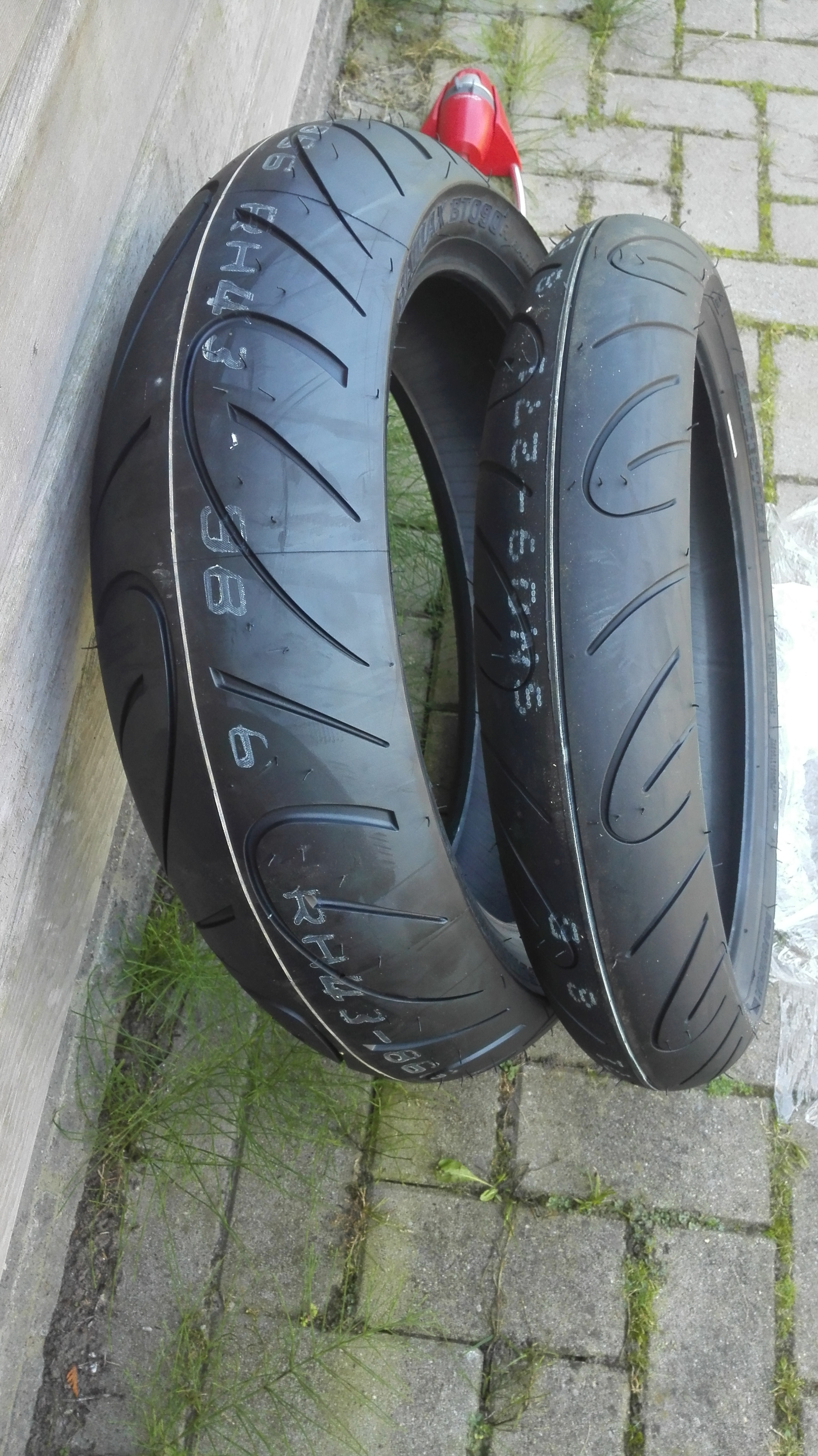 Voor en achter: nieuwe Delkevic wielen. Achter nu in de 17' maat, zodat er ook supercorsa's gemonteerd kunnen worden. Met een 160-er band. Helaas worden deze wielen niet meer gemaakt. (maar ik heb nog 3 nieuwe 17' wielen liggen; 2 x Delkevic en 1 x OEM en 1 x OEM gebruikt.